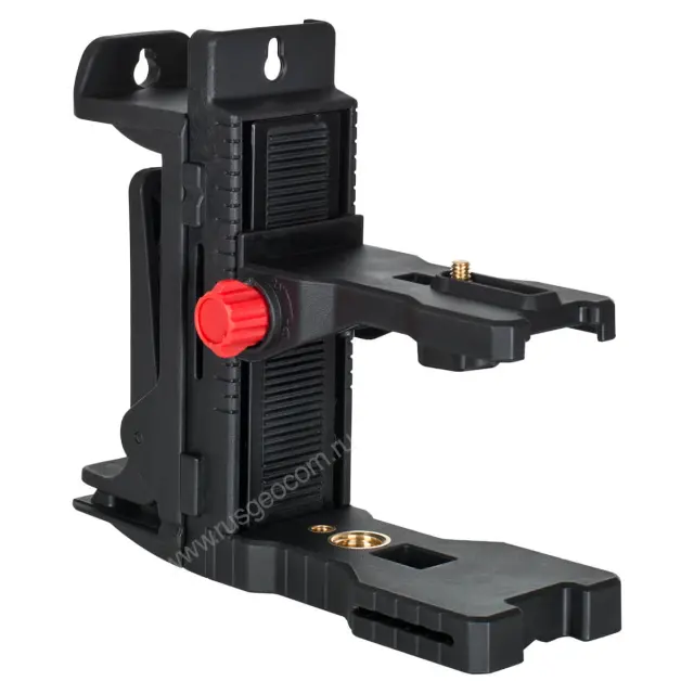 Оснащен резьбой ¼’’ и предназначен для установки лазерных уровней на вертикальные поверхности. Плавная регулировка высоты осуществляется с помощью винтов, что позволяет выставить нивелир на нужный уровень. В основание встроена резьба 5/8’’, благодаря которой кронштейн можно использовать как переходник с одного размера резьбы на другой.