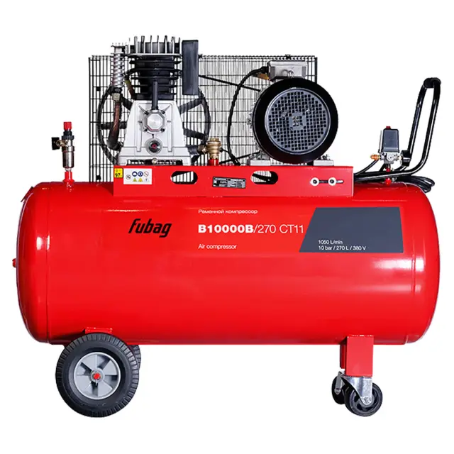 Ременной компрессор FUBAG B10000B/270 CT11 - двухцилиндровый одноступенчатый агрегат, который предлагает высокую производительность и превосходные характеристики для самых требовательных задач.