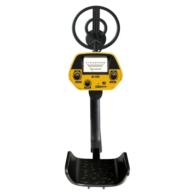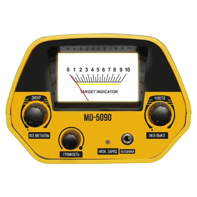 Блок управления Tianxun MD-5090 оснащен классической аналоговой шкалой, которая визуально подсказывает тип найденного объекта. В отличие от сложных цифровых дисплеев, стрелочный индикатор мгновенно реагирует на сигнал, помогая отличить ценную монету от железного мусора. Пользователю доступны ручная регулировка чувствительности и дискриминация — вы можете настроить прибор так, чтобы он игнорировал мелкое железо (гвозди, пробки) и концентрировался исключительно на цветных металлах или крупных объектах.