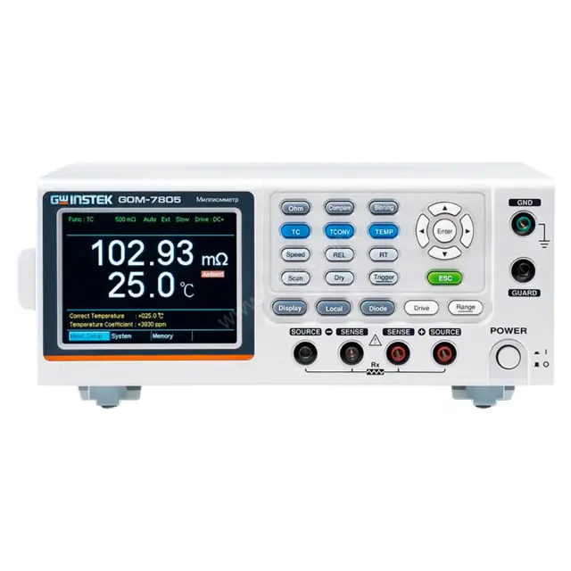 Миллиомметр GW Instek GOM-7804 - прецизионный программируемый прибор сопротивления постоянного тока малых и сверхмалых номиналов. Как средство измерений утвержденного типа, он может использоваться в лабораторной практике для контроля параметров резистивных радиоэлектронных компонентов, шунтов, коммутационных элементов, соединителей и т.п., а также на производстве в ходе проверки качества выпускаемой продукции. От модели предыдущего поколения GOM-802 компании GoodWill данный прибор отличается увеличенной разрядностью, повышенным быстродействием, наличием интерфейсов для подключения к ПК и набором дополнительных функций для эффективного решения различных измерительных задач.
