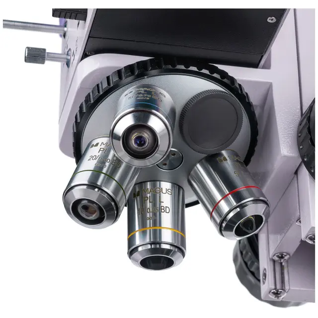 | Объективы | планахроматические, скорректированные на бесконечность: PL L5х/0,12 BD, PL L10х/0,25 BD, PL L20х/0,40 BD, PL L50х/0,70 BD; парфокальная высота 45 мм (*опция: PL L40х/0,60 BD, PL L60x/0,70 BD, PL L80x/0,80 BD, PL L100х/0,85 BD (сухой)) |