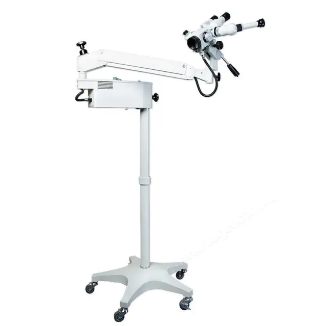 Колесное основание штатива с регулировкой по высоте оснащено поворотной штангой для крепления оптической системы. Благодаря чему, обеспечивается удобный доступ к рабочему полю, возможность быстрого перемещения прибора и фиксации в нужном положении, что важно во время операций.