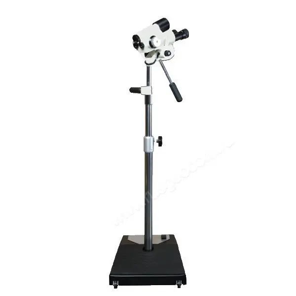 Компактная конструкция – кольпоскоп в сложенном положении занимает достаточно мало места. Его оптический блок с подсветкой смонтирован на штативе с прямым телескопическим устройством на тефлоновом шарнире, опирающимся на прямоугольное основание. В нерабочем положении оптические элементы закрываются чехлом для удобства транспортировки.