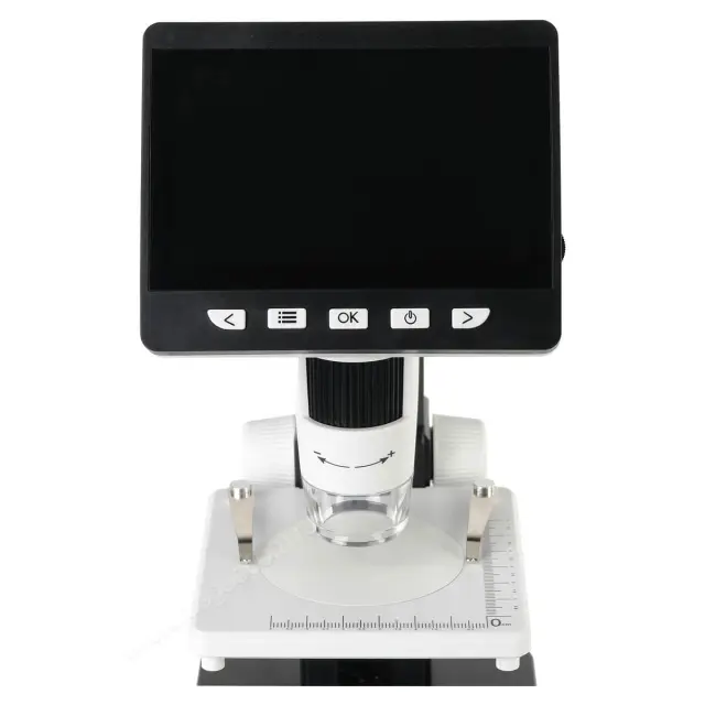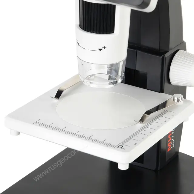 Цифровой микроскоп оснащен 2-мегапиксельной камерой и 10 светодиодами с регулируемой яркостью в качестве подсветки. Предметный столик микроскопа МИКМЕД LCD 1000Х 2.0 комплектуется пружинными зажимами для фиксации предметных стекол с образцами. Механизм подъема предметного столика выполняет функции регулировки оптического увеличения, меняя расстояние от объекта контроля до неподвижного объектива камеры микроскопа. Настройка резкости изображения производится путем поворота регулировочного кольца, изменяющего фокусировку объектива.