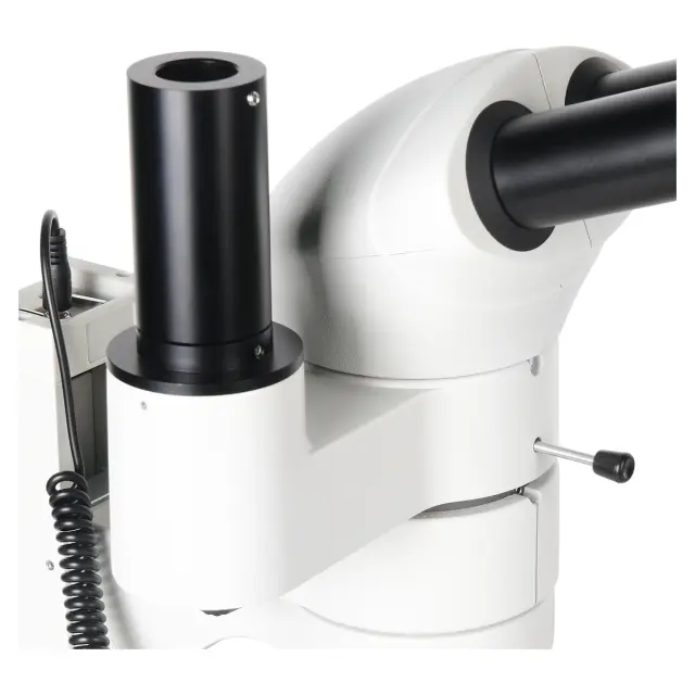 Визуальная насадка микроскопа имеет дополнительный тубус для установки окулярной камеры - канал визуализации, что позволяет передавать файлы на внешнее устройство для их записи и просмотра на мониторе в режиме реального времени. Посадочный диаметр тубуса для установки камеры (видеоокуляра) 23,2 мм. Видеоокуляр в комплект микроскопа не входит и приобретается отдельно. Выбрать и приобрести видеоокуляр можно как в нашем интернет-магазине, так и у наших дилеров.