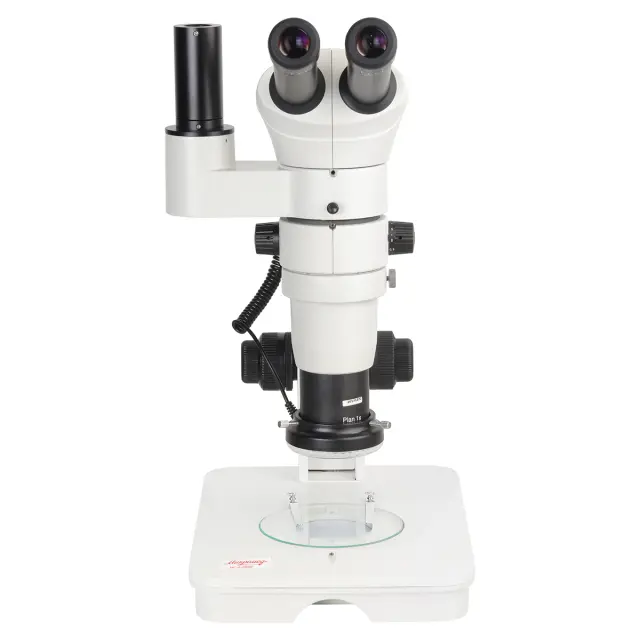 - Основание микроскопа, корпус визуальной и штатив микроскопа изготовлены из алюминиевого сплава и имеют антистатическое покрытие.