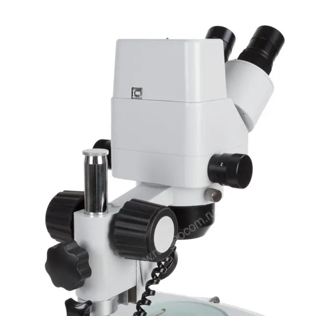 - 2 Камера 1,3 МП, встроена в оптическую головку. Сменные части: окуляр 10х - 2 шт. - установлены в окулярных тубусах