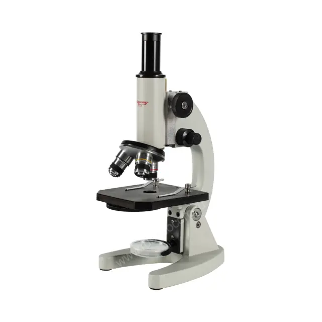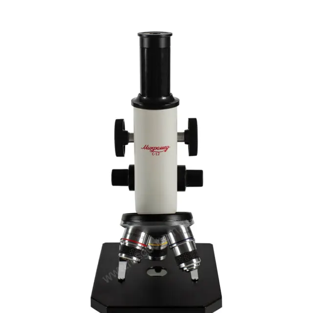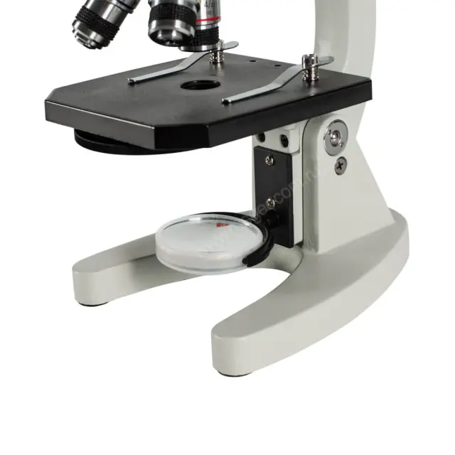 - 1 Штатив микроскопа с окулярным тубусом и трехгнездным револьвером, с механизмом грубой и тонкой фокусировки