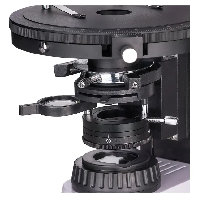 | Промежуточная насадка | встроенный анализатор, с переключением на обычный либо поляризованный свет, с вращением 0–360°; нониус для измерения углов с точностью до 0,1°; линза Бертрана; слот для установки компенсаторов |