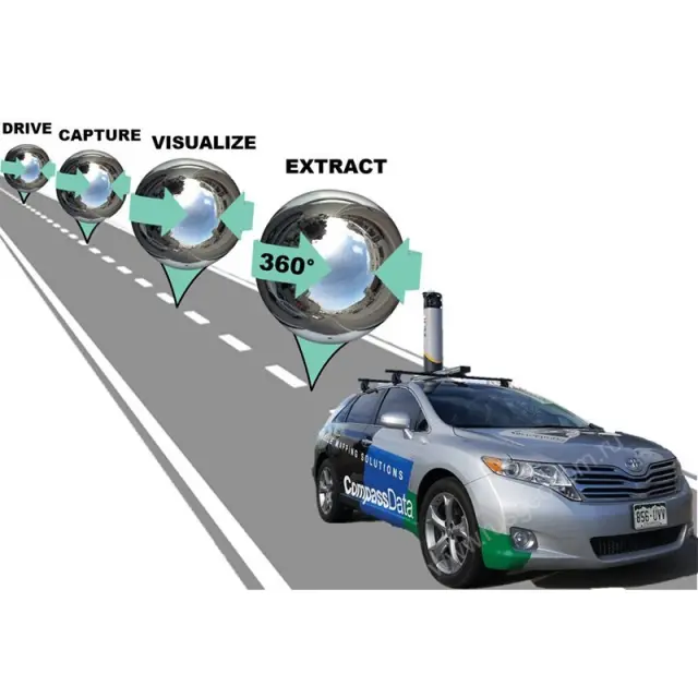 Мобильный лазерный сканер оснащен камерами, которые обеспечивают получение панорамных снимков общим разрешением в 30 Мп. Фотографирование возможно во время движения автомобиля благодаря высокой скорости записи. Это дает возможность собрать необходимую информацию на полевом этапе исследований в кратчайшие сроки и сократить стоимость исследований. Установлено 6 камер, которые дают обзор на 360°.