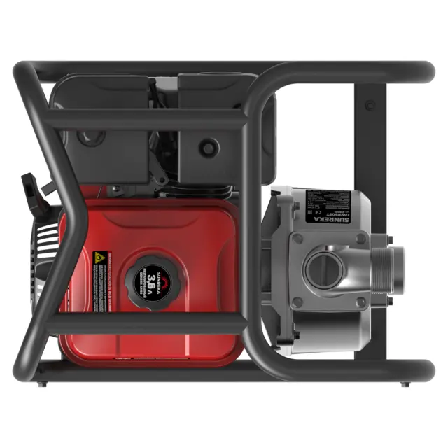 Все узлы SUNREKA GWP50ST смонтированы на прочной стальной сварной раме. Рама не только облегчает транспортировку и установку помпы на неровном грунте, но и служит надежным защитным каркасом, предотвращающим повреждение двигателя и улитки насоса в жестких условиях стройплощадки или полевых работ. Оптимальный баланс веса и габаритов делает эту модель удобной для перемещения силами одного оператора.