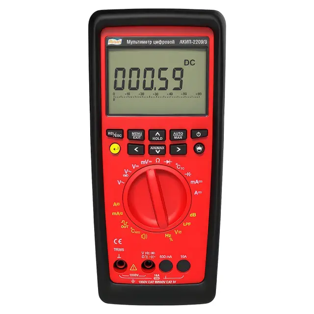 Мультиметр АКИП-2209/3 может измерять постоянные и переменные напряжения и токи с максимальными значениями до 1000 В и 10 А соответственно. Это делает его идеальным инструментом для работы с высоковольтными цепями и мощными устройствами, такими как электродвигатели, преобразователи и другие электрические системы.