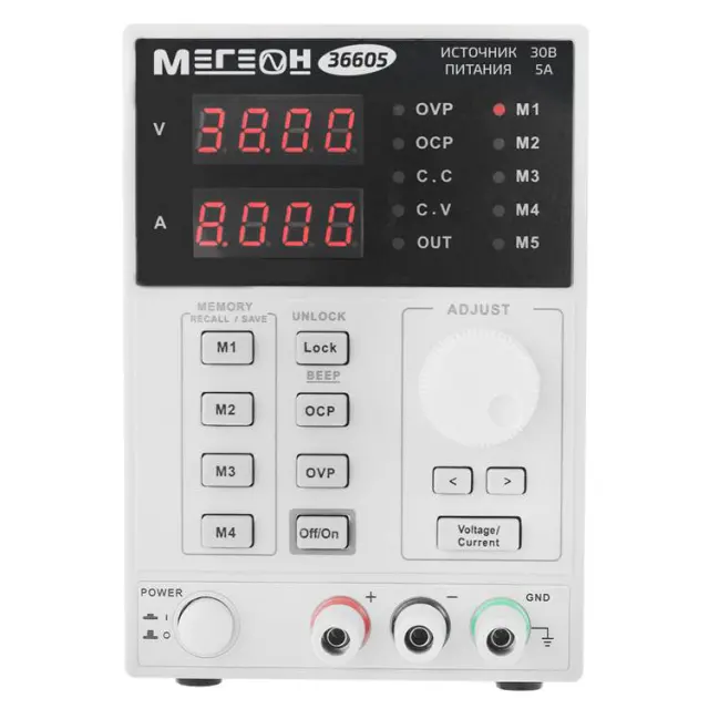 Одноканальный программируемый линейный источник питания МЕГЕОН 36605 представляет собой высокопроизводительный лабораторный прибор, построенный на основе трансформаторной схемы преобразования, оснащенный встроенной защитой от перегрева, короткого замыкания, перенапряжения и превышения силы тока с настраиваемыми порогами. Он обладает наибольшей мощностью среди моделей серии МЕГЕОН 36xxx, обеспечивая возможность питания оборудования, приборов и систем с рабочим напряжением до 60 В и токопотреблением до 5 А. Переключение режимов стабилизации напряжения или силы тока производится автоматически при достижении выбранных при настройке пороговых значений, без провалов и бросков мощности в момент перехода, что позволяет выполнять диагностику и тестирование прецизионных устройств.