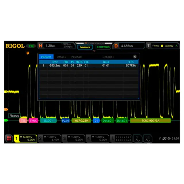 | Опция | запуск и анализ сигналов последовательной шины FlexRay MSO8000-FLEX |