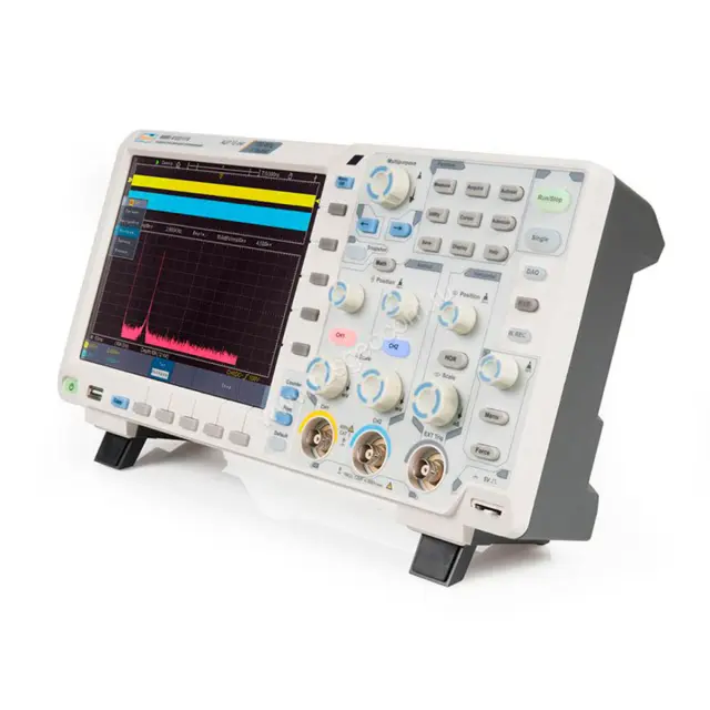 Интерполяция - Sin X/х, линейная. Автоматические (до 20-и параметров) и курсорные измерения. Математические функции, БФП (1 кБ). Цифровые фильтры. Внутренняя память - 100 осциллограмм и 8 профилей настроек. Выход для внешнего монитора (VGA). Опции - батарейное питание, генератор сигналов, Wi-Fi, сенсорный экран, декодирование протоколов. |