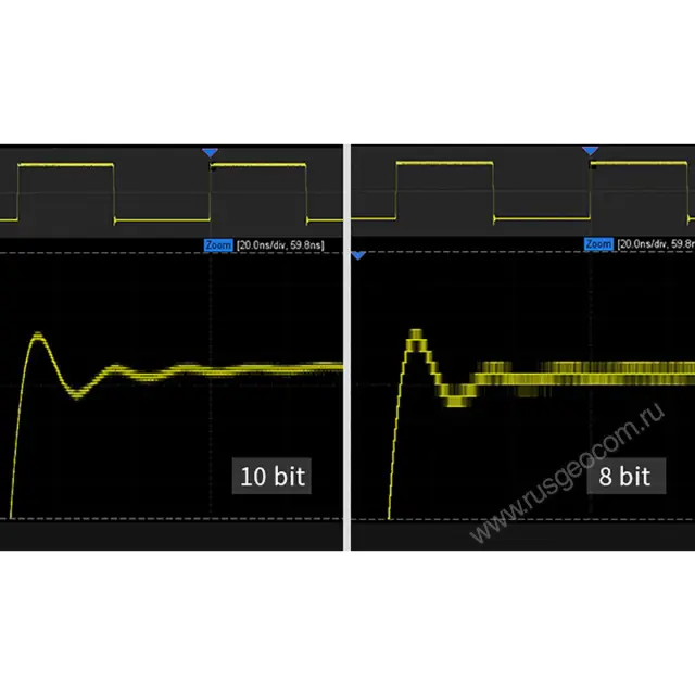 Разрядность АЦП может быть установлена в диапазоне от 8 до 10 бит в зависимости от требуемой полосы пропускания и объема памяти. Это дает возможность пользователю выбирать оптимальный режим работы в зависимости от специфики проводимых измерений.