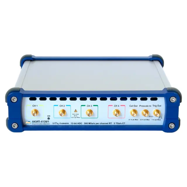 Осциллограф АКИП-4139/1 – портативный цифровой прибор на основе 12-битного АЦП с полосой пропускания 5 ГГц, выполненный в виде USB-приставки в слим-корпусе и предназначенный для работы под управлением пользовательского ПК. Модель совмещает в себе функции запоминающих осциллографических устройств, обеспечивающих сбор данных с выборкой в реальном и эквивалентном времени. Эта модель не уступает по производительности лабораторным приборам в настольном исполнении, отличается более доступной ценой и может использоваться для производственных нужд, решения задач разработки, отладки и диагностики, а также для обучающих целей.