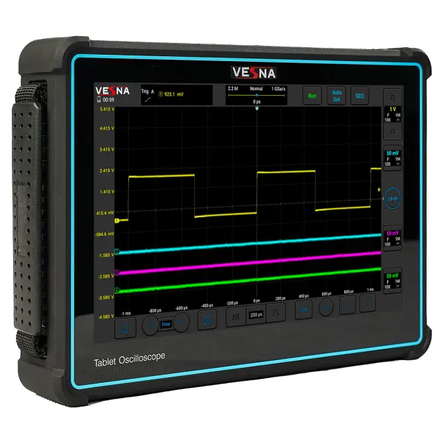 Осциллограф VESNA AVU2-403M — это высокопроизводительный автомобильный анализатор с полосой пропускания 300 МГц, созданный для инженеров, которым необходима не только точность сигнала, но и максимальная готовность к работе в полевых условиях.