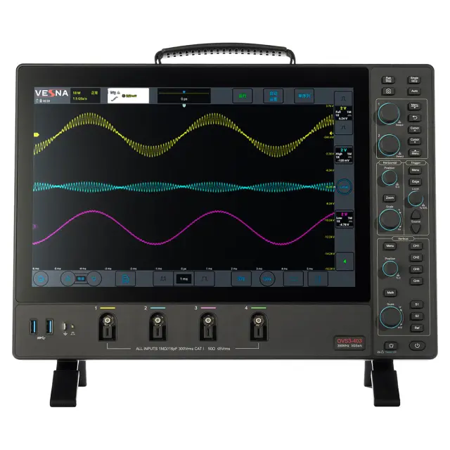 Осциллограф VESNA OVS3-405 — это высокопроизводительный прибор нового поколения, предназначенный для разработчиков, инженеров и исследователей, работающих с высокоскоростной цифровой и аналоговой электроникой. С полосой пропускания 500 МГц, частотой дискретизации до 3 Гвыб./с и собственным 12-битным АЦП, он обеспечивает беспрецедентную точность воспроизведения даже самых слабых и быстрых сигналов. Благодаря четырем независимым аналоговым каналам, прибор позволяет одновременно анализировать сложные многоуровневые системы — от промышленных контроллеров до встраиваемых плат с микропроцессорами.