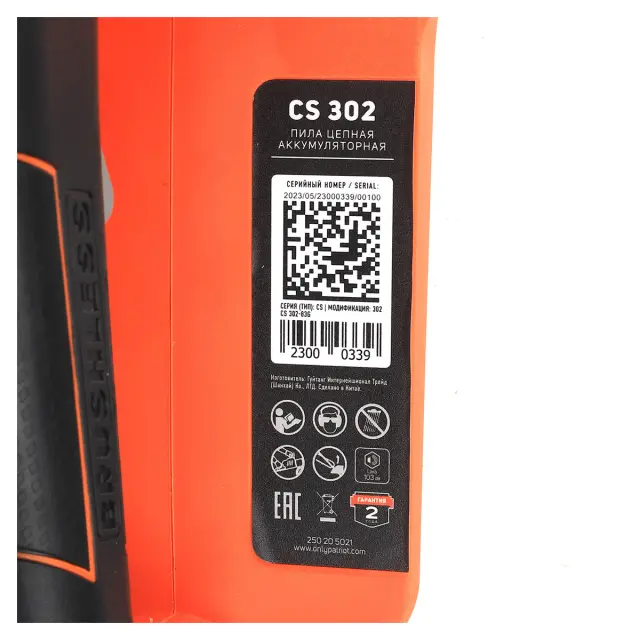 - 1 Пила цепная аккумуляторная Patriot CS 302 21В