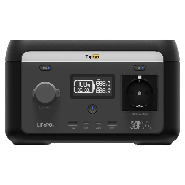 Портативная электростанция TopON TOP-H300 мощностью 300 Вт — это удобный и надежный источник питания для различной техники. Устройство идеально подходит для зарядки ноутбуков, смартфонов, планшетов, фотокамер и другой электроники. Оно станет отличным помощником на природе: в кемпинге, на рыбалке, пикнике или во время путешествий. Электростанция обеспечит работу освещения, автомобильного холодильника или небольшого вентилятора. Дома TOP-H300 пригодится как резервный источник питания для роутера, модема, настольной лампы или других важных устройств в случае отключения электричества..