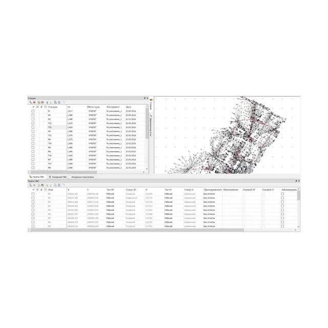 - импорт и обработка данных полевых измерений с тахеометров;