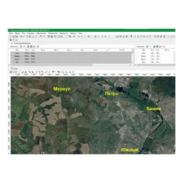 Выходные данные могут быть сохранены в файлах форматов LandXML, KML, GPX и в текстовом формате с гибкой настройкой формата по шаблону. Предоставляемая ТИМ КРЕДО ТРАНСКОР возможность расчета не только математической связи двух плоских систем координат, но и расчета ключа МСК, позволяет использовать полученные данные в сторонних программах постобработки спутниковых наблюдений.