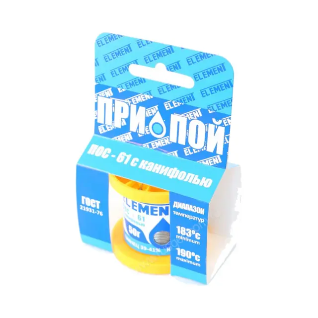 Технические характеристики Припой ELEMENT ПОС 61 (1,0мм;50гр. с канифолью)