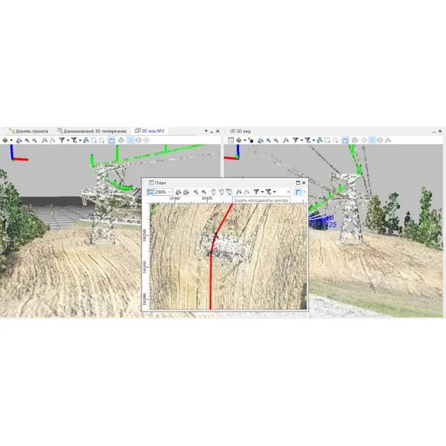 - автоматический поиск линий электропередачи (столбы и провода) по облаку точек с последующей интерактивной проверкой результатов;