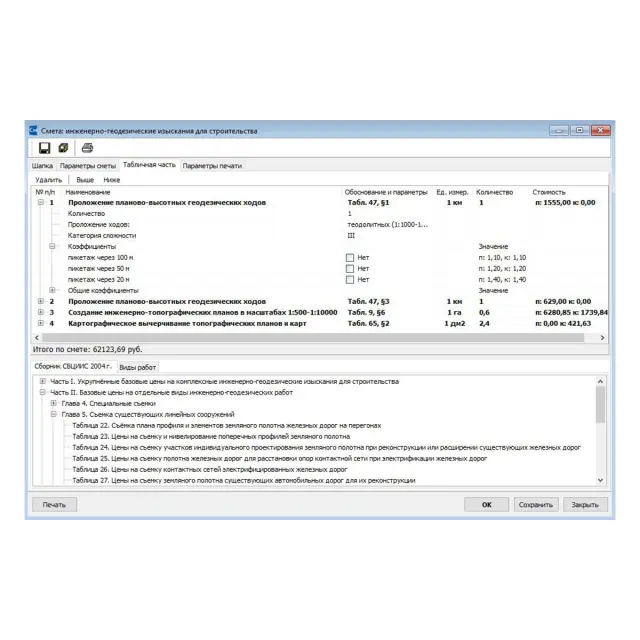 - смета на инженерно-геологические изыскания, смета на геодезические изыскания и работы, а также сметы на инженерно-экологические, инженерно-гидрометеорологические изыскания, на гидрографические, топографо-геодезические работы и проведение кадастровых работ (межевой план);