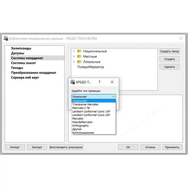 - поддержка локальной системы координат или систем координат в проекциях — Поперечно-цилиндрическая Меркатора, ПсевдоМеркатора, Коническая Ламберта, Ортографическая, Композиционная и ряда других;