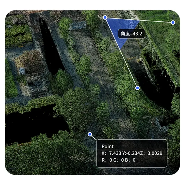 • Полностью автоматизированное объединение облаков точек с поддержкой функций измерения, обрезки и поперечного сечения.