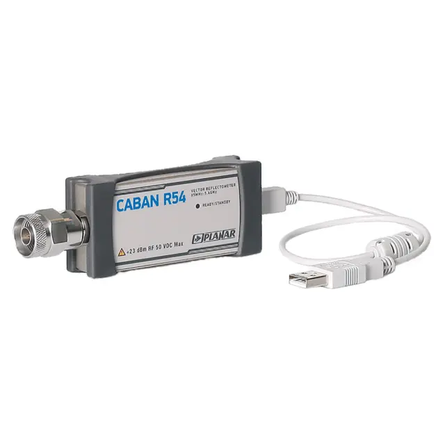 Рефлектометр векторный Planar CABAN R54 представляет собой однопортовый измеритель базового уровня, который может использоваться для контроля характеристик антенных устройств, трактов и прочих радиоэлектронных компонентов в полосе частот от 85 МГц до 5,4 ГГц. Помимо определения параметров отражения и потерь в линиях, обеспечивается возможность измерения также и других S-характеристик при задействовании двух таких радиоизмерительных приборов – благодаря двунаправленной конструкции порта, реализующего и функции приемника, и источника тестового сигнала. Данная модель обладает наименьшими размерами и весом в линейке CABAN, а также наиболее доступной ценой.