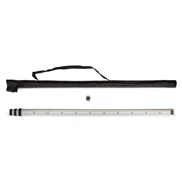 удобная телескопическая конструкция, точные результаты до 1 мм, миллиметровая шкала, пузырьковый уровень