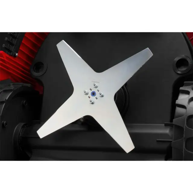 - Специализированный двухсторонний нож из нержавеющей стали бережно обрабатывает газон и может выполнять мульчирование.