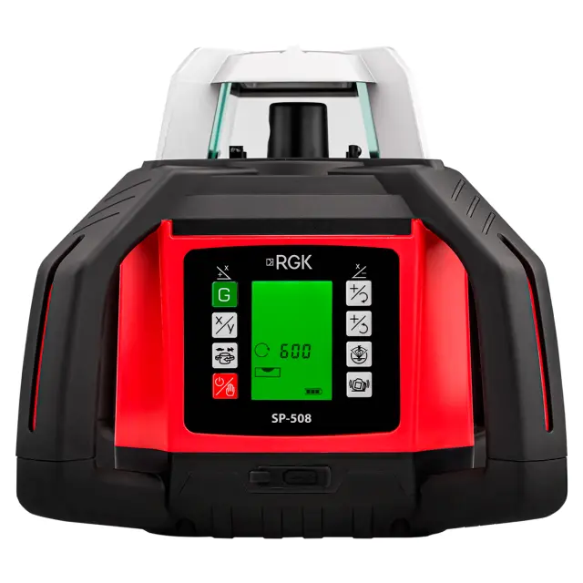 Ротационный нивелир RGK SP-508 — это усовершенствованная версия популярной модели SP-502, сохраняющая все её ключевые преимущества и при этом предлагающая одну принципиально новую функцию — автоматическую ориентацию лазерного луча на приёмник. Эта технология значительно упрощает и ускоряет ряд геодезических и строительных операций, где требуется точное совмещение лазерной плоскости с заданной отметкой. Она не просто упрощает работу, а кардинально меняет подход к выполнению ряда задач: теперь не нужно вручную подстраивать прибор под приёмник — он делает это сам, мгновенно и точно.
