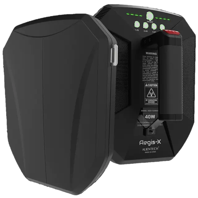 Технические характеристики Ручной глушитель БПЛА AEGIS-X Against UAV | ALIENTECH (1.2G+1.6G+2.4G+5.8G)