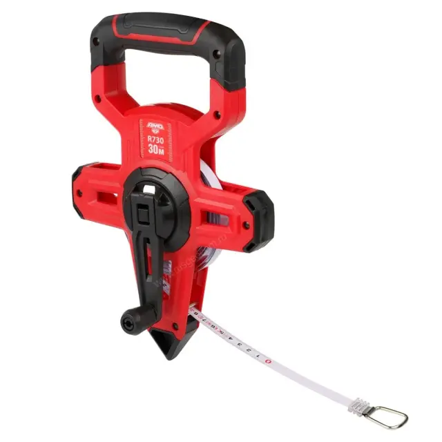 Рулетка измерительная AMO R730 длиной 30 метров - специализированный инструмент для строителей, геодезистов и кадастровых инженеров. Чаще всего она используется для измерений земельных участков, больших помещений и конструкций. Эта модель относится ко второму (II) классу точности, благодаря чему специалист может быть уверен в достоверности результатов и качестве полученных данных.