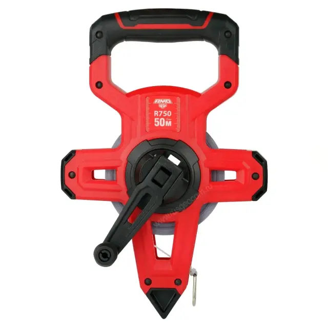 Рулетка измерительная AMO R750 длиной 50 метров - специализированный инструмент для строителей, геодезистов и кадастровых инженеров. Чаще всего она используется для измерений земельных участков, больших помещений и конструкций. Эта модель относится ко второму классу точности, благодаря чему специалист может быть уверен в достоверности результатов и качестве полученных данных.