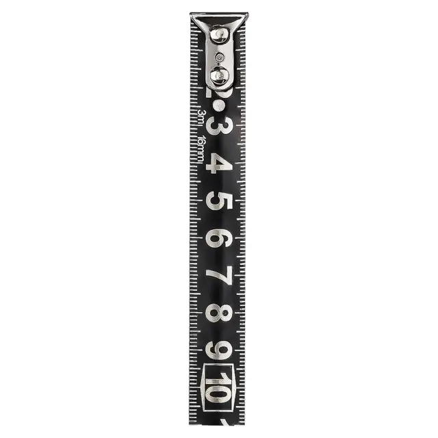Лента изготовлена из химически нейтральной хромоникелевой нержавеющей стали, благодаря чему измерительная рулетка пригодна для выполнения работ при высокой влажности и в агрессивных средах. В рабочем положении мерная часть, за счет вогнутой формы, может выдвигаться из корпуса без залома на длину более 1,5 м в горизонтальном направлении. Это упрощает замеры в труднодоступных местах без посторонней помощи. Лента может быть зафиксирована с любой положении с помощью полозкового стопора. Конец полотна снабжен Г-образным зацепом, который, за счет перемещения, позволяет выполнять замеры как с упором в торцевую часть, так и с зацепом за внешние углы. Также возможна фиксация края ленты за головку шурупа или гвоздя, для чего в перпендикулярной удлиненной части зацепа предусмотрена соответствующая прорезь.