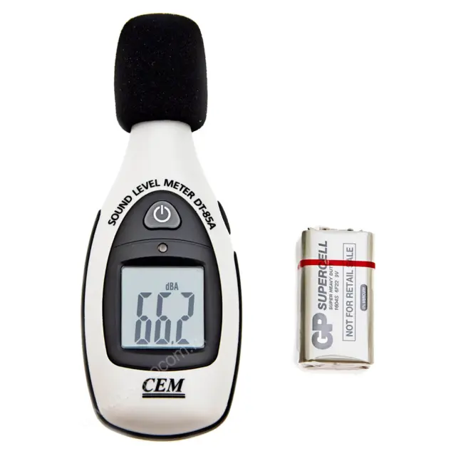 Шумомер CEM DT-85A относится к мобильным малогабаритным приборам с батарейным питанием, которые предназначены для оперативного контроля условий окружающей среды в ходе аттестации рабочих мест, а также проверки соответствия целевых объектов требованиям санитарных норм. Представляя собой цифровой измеритель, изделие определяет уровень акустических воздействий, создаваемых источниками шума, с отображением получаемых результатов на ЖК-дисплее в дБ. Помимо текущих показателей, инструмент автоматически регистрирует наибольшее и наименьшее значение за измерительную сессию, которые могут выводиться на экран при нажатии соответствующей кнопки.