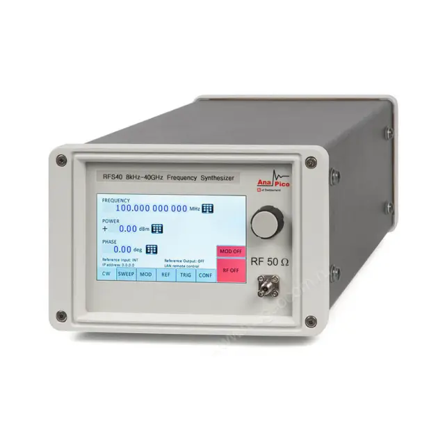 Синтезатор частот AnaPico RFS40 40 ГГц представляет собой прецизионный широкополосный лабораторный источник сигнала аналогового типа. Он служит для формирования гармонических электромагнитных колебаний с точно заданными показателями, синхронизированных по частоте с внутренним высокостабильным опорным генератором или внешним источником. Также пользователю доступны возможности фазовой, частотной или импульсной модуляции и поддержкой свипирования. Высокочастотный генератор сигналов способно выдавать сигналы в широкой полосе частот с исключительно низкими искажениями и шумовыми показателями, с возможностью сверхбыстрого переключения.
