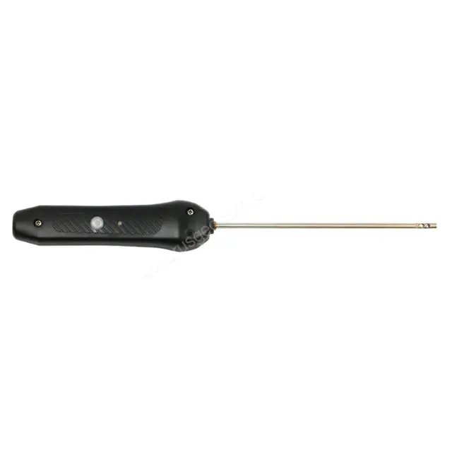 Беспроводный зонд ТЕХНО-АС СЗВВ.150 выполнен в виде ручки-держателя с металлическим стержнем 15-сантиметровой длины диаметром 4 мм. На его конце размещен сенсорный элемент, функции которого выполняет термопарный спай. Модуль, преобразующий сигнал с датчика в цифровой вид, установлен непосредственно в корпусе изделия, выполненном в виде ручки, вместе со встроенным аккумулятором и Bluetooth-платой.