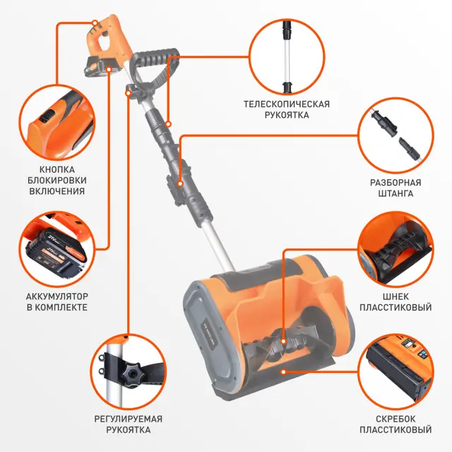 Аксессуары для Снегоуборщик аккумуляторный ручной Patriot PE 1002 UES с АКБ 2 Ач + ЗУ 2А