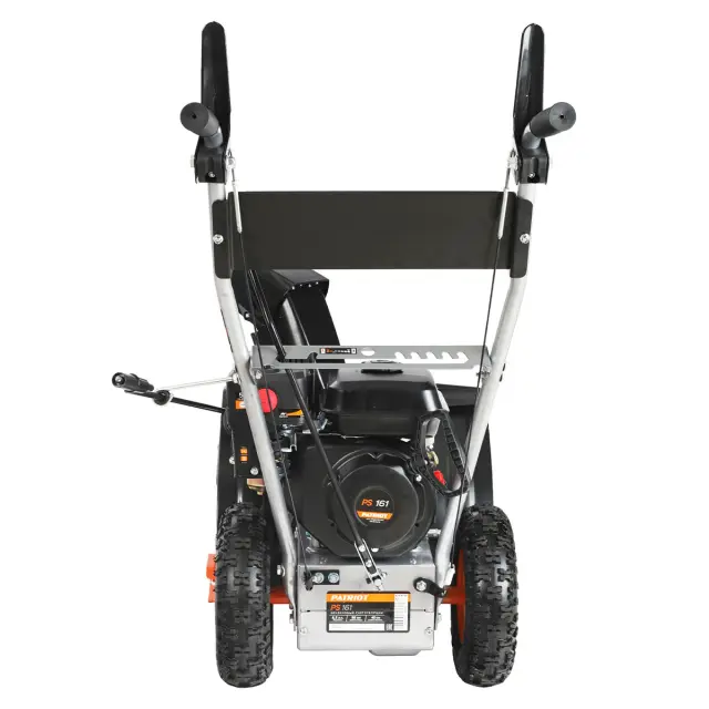 - 1 Снегоуборщик бензиновый Patriot PS 161 с установленным ковшом и колесами