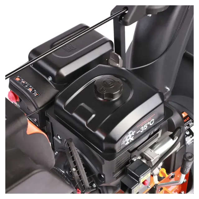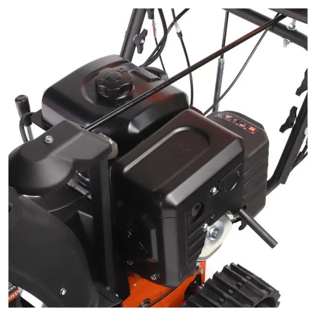 Снегоотбрасыватель оснащен светодиодным фонарем, расположенным на панели управления - актуальная функция для работы при недостаточном освещении. Подогреваемые рукоятки предотвращают замерзание пальцев во время длительной работы. Это особенно удобно с учетом специфики уборки, так как руки обычно находятся в одном положении в течение всего процесса, и даже перчатки не всегда спасают от мороза.