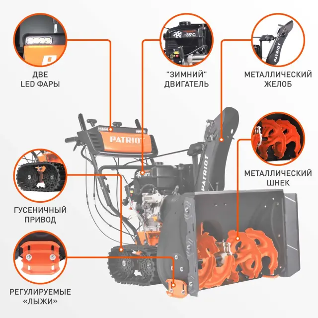 Бензиновый снегоуборщик Patriot Сибирь 110 ЕT является профессиональной моделью, предназначенной для эффективной очистки больших участков от снега. С его помощью можно легко убирать снег с городских площадок, спортивных стадионов и других пространств площадью до 1200 квадратных метров. Одна из ключевых особенностей модели - гусеничный привод, который делает его практически вездеходным и помогает преодолевать неровности и ямы.