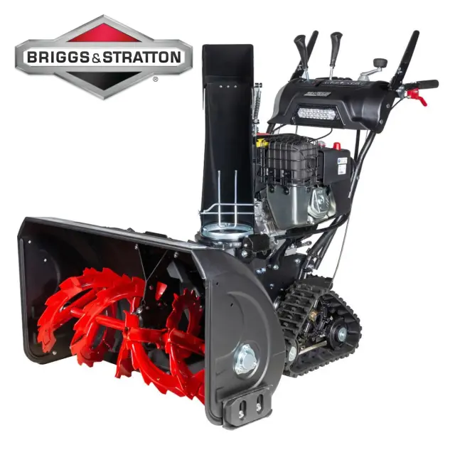 Ширина захвата в 870 мм и высота захвата в 540 мм делают процесс уборки снега быстрым и качественным. Гусеничный привод обеспечивает отличное сцепление бензинового снегоуборщика с поверхностью, что особенно важно на заснеженных и скользких участках. Это позволяет уверенно передвигаться по труднопроходимым местам, где другие модели могут застрять.