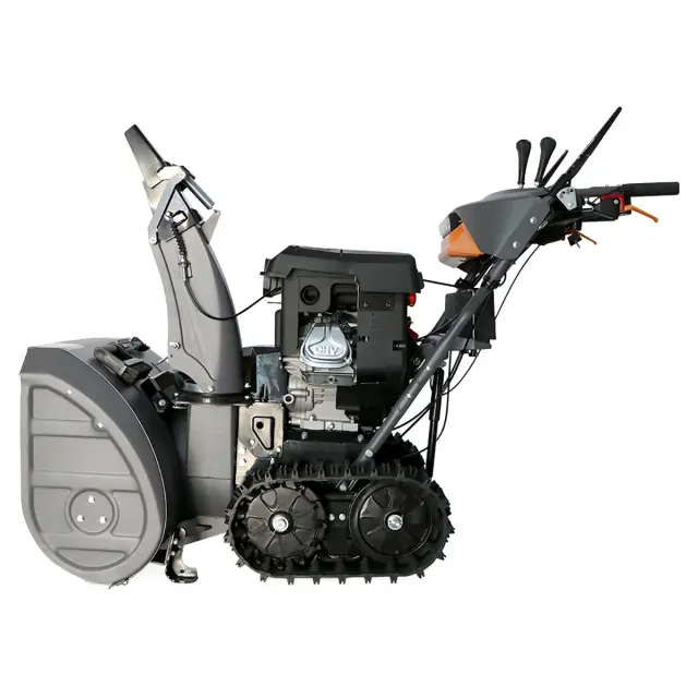 Снегоуборщик бензиновый самоходный Villartec WB 1576ET на гусеницах обеспечивает отличное сцепление на обледенелых участках и склонах, что особенно важно при уборке снега в условиях сильного морозного ветра или на наклонных поверхностях. Гусеницы не только повышают устойчивость к опрокидыванию, но и позволяют снегоочистителю уверенно передвигаться по сложным участкам, не оставляя следов и не повреждая поверхность.
