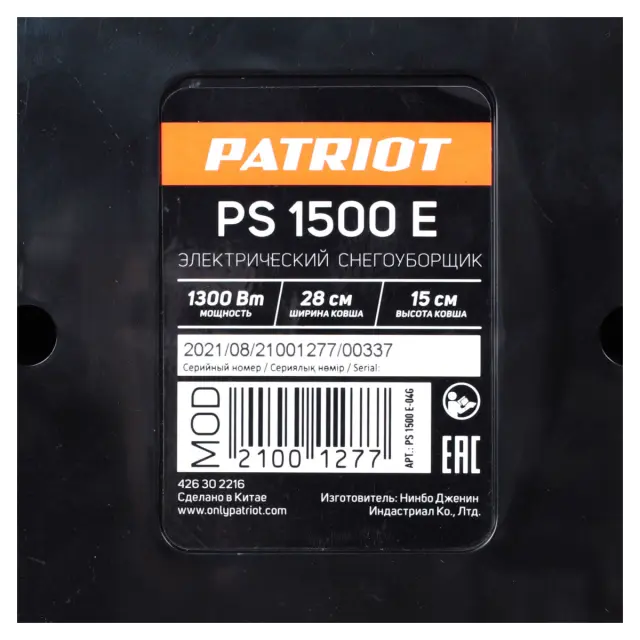- 1 Снегоуборщик электрический ручной Patriot PS 1500 E